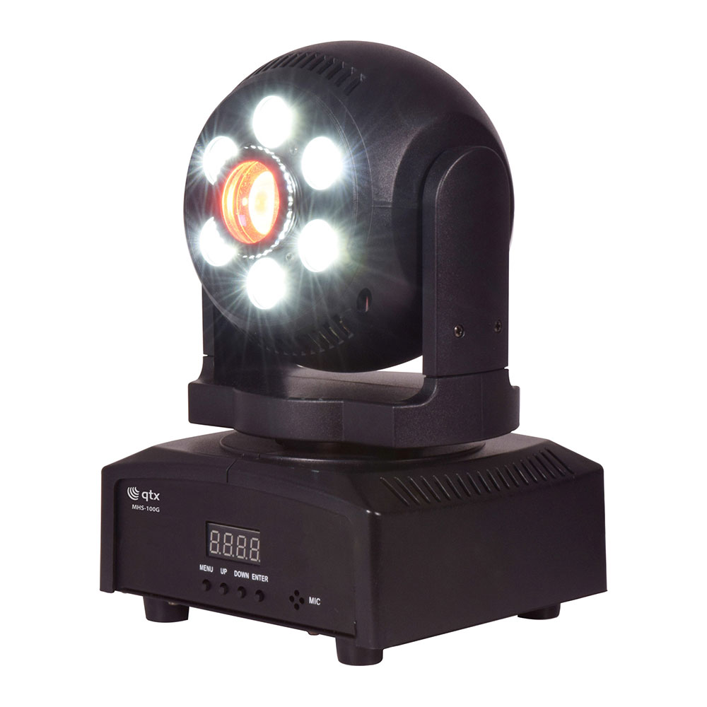 The QTX MHS-100G is a compact 100W Spot-Wash LED Moving Head with GOBOs that packs a powerful punch thanks to its combination of a 30W white LED and six 8W RGBW LEDs.