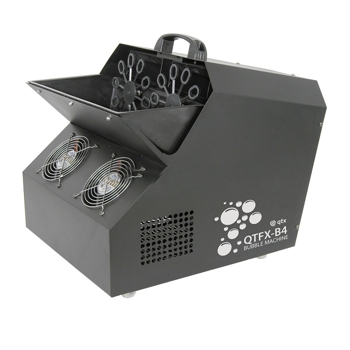 The QTX QTFX-B4 is a professional bubble machine that features a total of four fans with dual rotating heads that generate an exceptional amount of bubbles in a short period. This bubble machine is perfect for mobile DJs, large club and bar venues, large music venues, entertainment facilities, events productions, theatres, as well as schools and colleges.