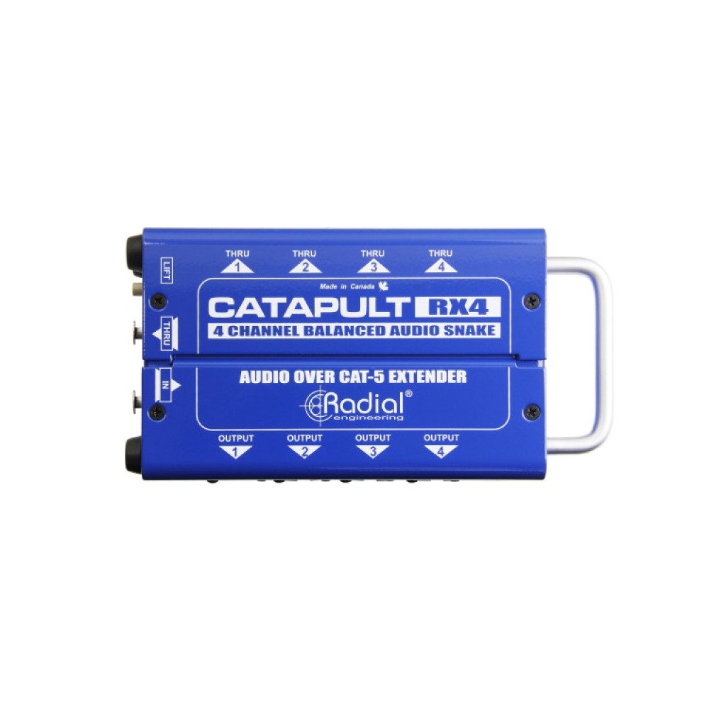 The Radial Catapult RX4 is a passive audio snake that can transport four analogue audio channels via normal Cat 5 or Cat 6 Ethernet cable. The Catapult RX4 function as a standard four-channel analogue audio snake, allowing you to transport mic or line-level signals from one location to another without signal loss, noise, or interference, and without the requirement for digital audio conversion.