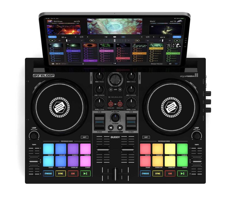 The Reloop BUDDY is a 2-channel DJ controller that has been designed and built in partnership with Algoriddim, and perfect for beginner DJs. The compact performance controller is for use across all platforms including iOS, Android, iPadOS, Mac and PC, and features the brand-new Neural Mix™ controls.