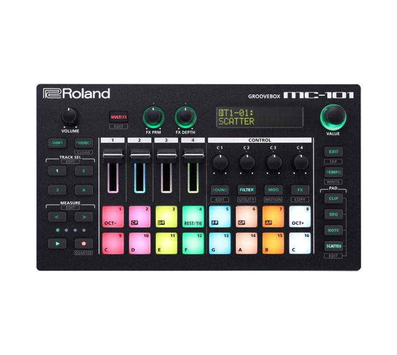 The Roland MC-101 Groovebox is the perfect idea's generator for the portable producer. Featuring classic sounds from past Roland hardware synths.