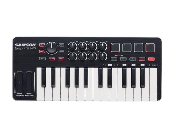 For use with the Graphite M25, as well as Samson's other mini USB MIDI controllers (M32, MF8, MD13), a Graphite Editor Software can be downloaded for free from Samson’s website. The software can be used to customize MIDI workflow by creating presets on the editor and saving them to your Graphite M25 for quick recall.