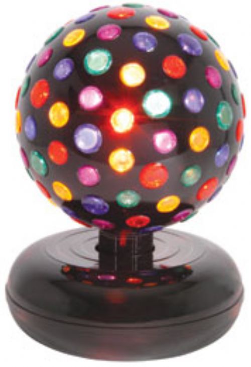 ROTATING DISCO BALLA 260mmØ colourful rotating disco ball light effect ideal for enhancing parties at home.Features: * 5 colour rotating effect * Fixed mains lead with On/Off rocker switch * Free standing * All plastic constructionSpecification:Power supply 230Vac, 50HzLamp E14, 230V, 60WDimensions 400 x 260mmØ