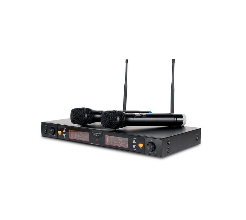 The American Audio WM-219 is a 2-channel UHF wireless microphone system that consists of two wireless microphones and a receiver. This wireless system is perfect for both fixed and mobile installations and fits right in at home for PA systems, karaoke, mobile entertainers, schools and colleges, and houses of worship.
