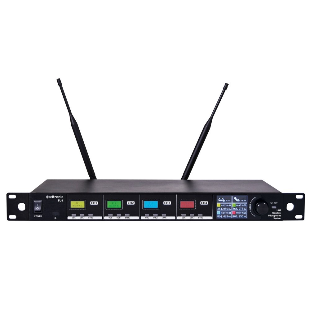 The Citronic TU4 Quad PLL Wireless Microphone System is a professional true-diversity UHF setup designed for users who need reliable, high-quality performance across multiple channels. This version includes four rugged handheld microphones, each built with a high-quality dynamic capsule and housed in a durable full-metal body.
