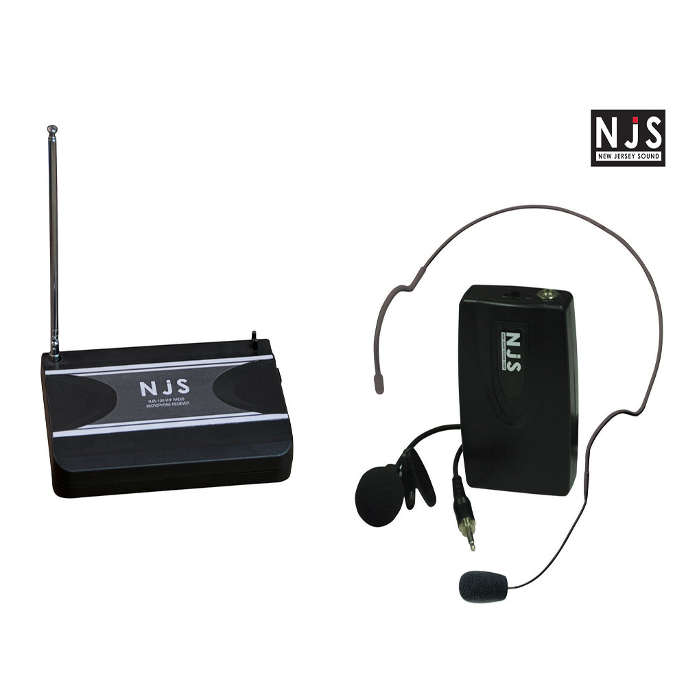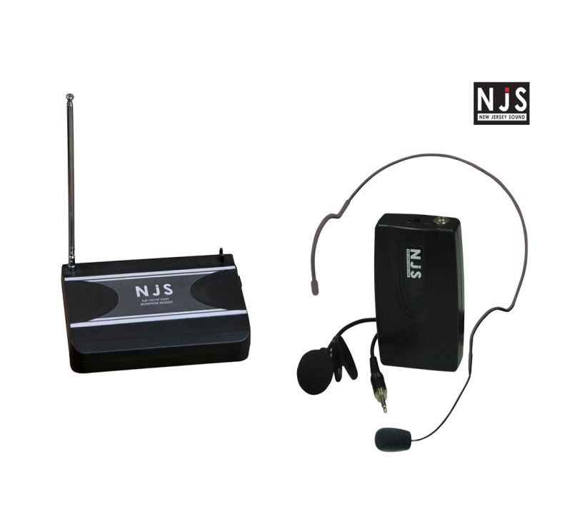 The NJS221 radio microphone system comes with a 3.5 mm output, complete with transmitter, receiver, lead, headband microphone and batteries.