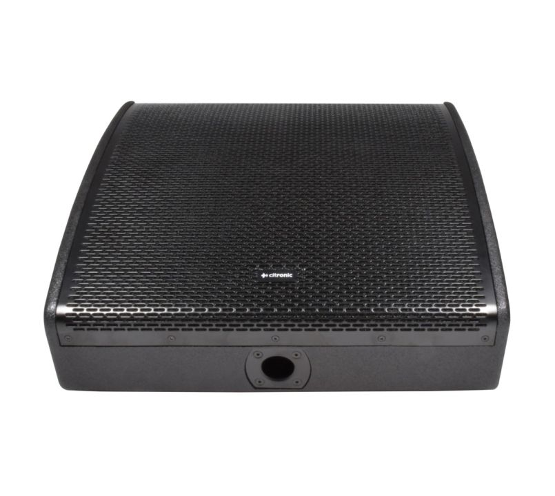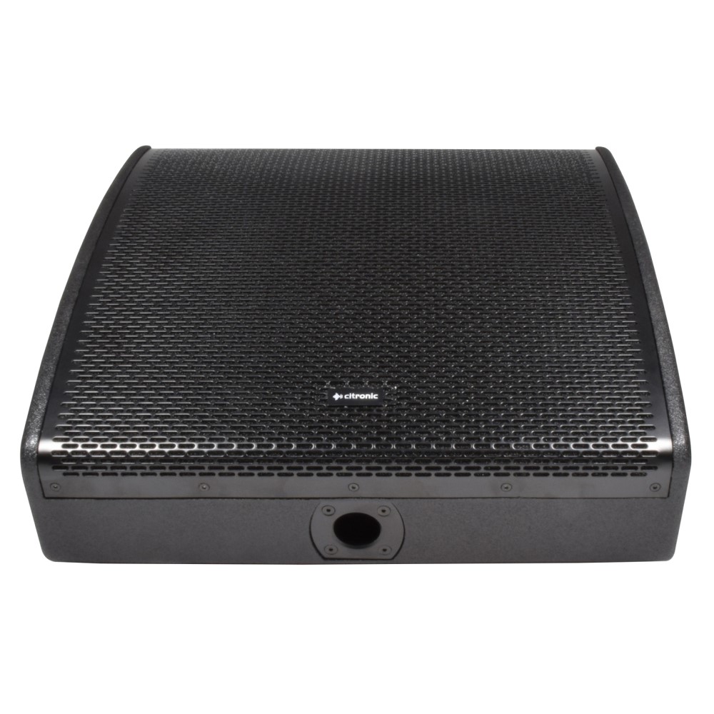 The Citronic CM15A is a powerful 15" active wedge speaker housed in a sturdy, texture-coated wooden enclosure.