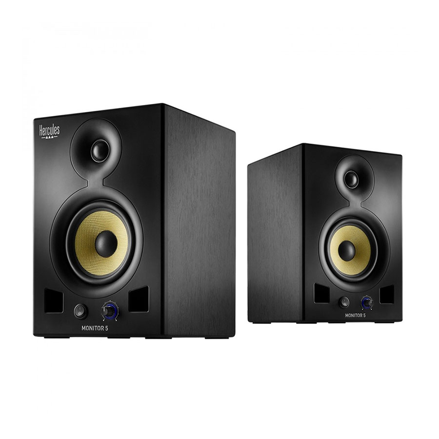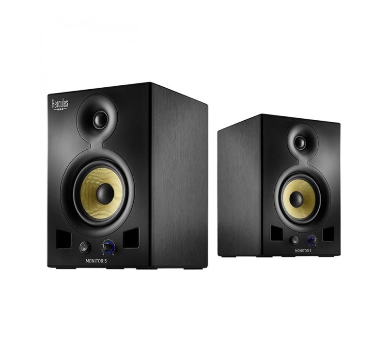 The Hercules Monitor 5 Speakers are ideal for all uses, ranging from music producers to online gamers. With its high-grade sound quality, a 5-inch woofer, and two-front mounted bass ports, the Monitor 5 Speakers are undoubtedly the perfect choice whether you're arranging your first musical piece or learning how to mix. Furthermore, you can connect these speakers to a wide range of audio gear due to their RCA, TRS and XLR inputs. In addition, the Monitor 5 Speakers have a handy front-panel on/off button with a built-in LED. The speakers' sound is customisable thanks to the rear panel sound adjustment options, and the freedom of high-frequency and low-frequency controls allows you to get your sound perfect for your needs, no matter where you are.