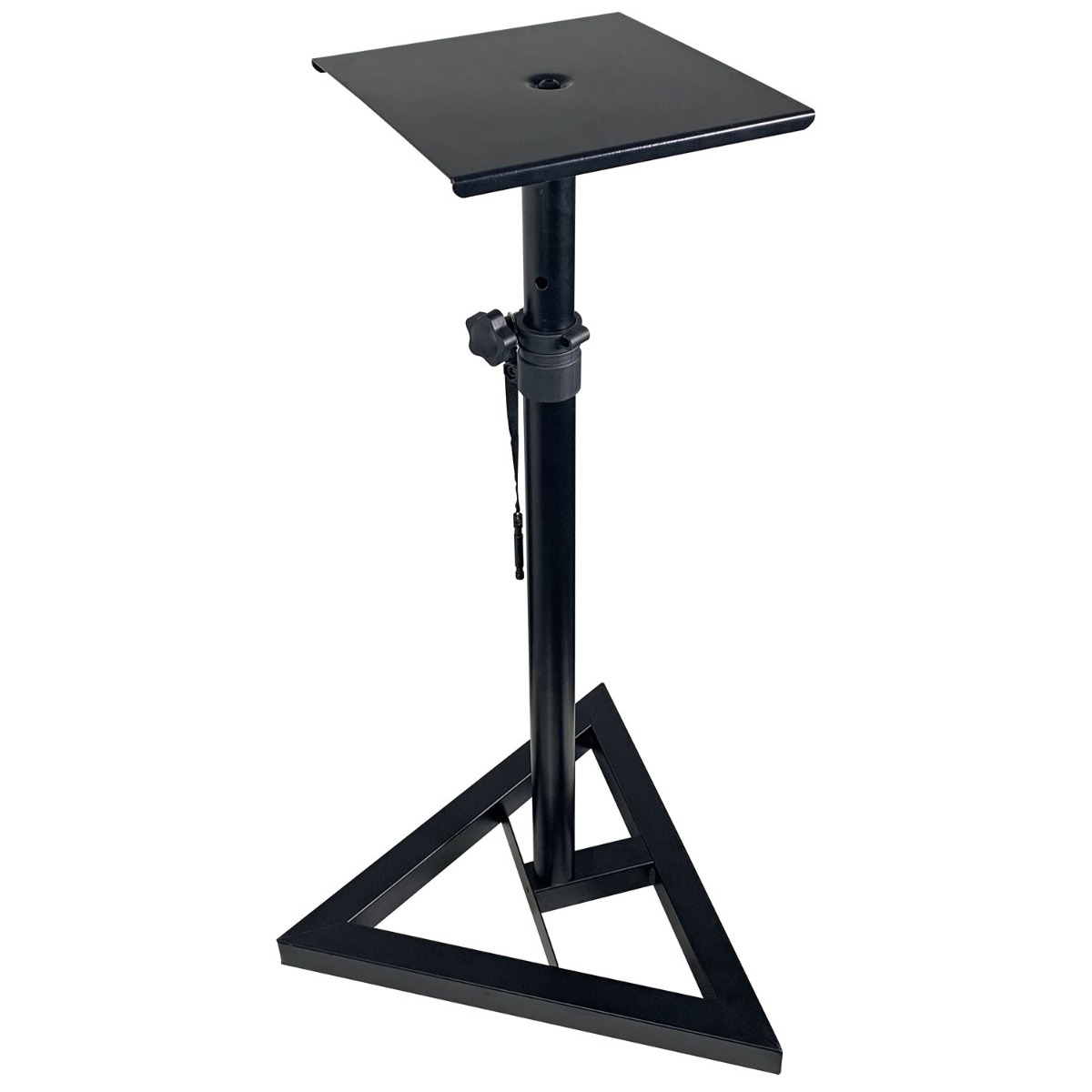 Enhance your audio experience with the QTX Monitor Speaker Stand, a robust, reliable solution for studios and home DJ setups. Featuring a sleek, low-profile triangular base, this stand not only ensures stability but also enhances your setup's aesthetics.