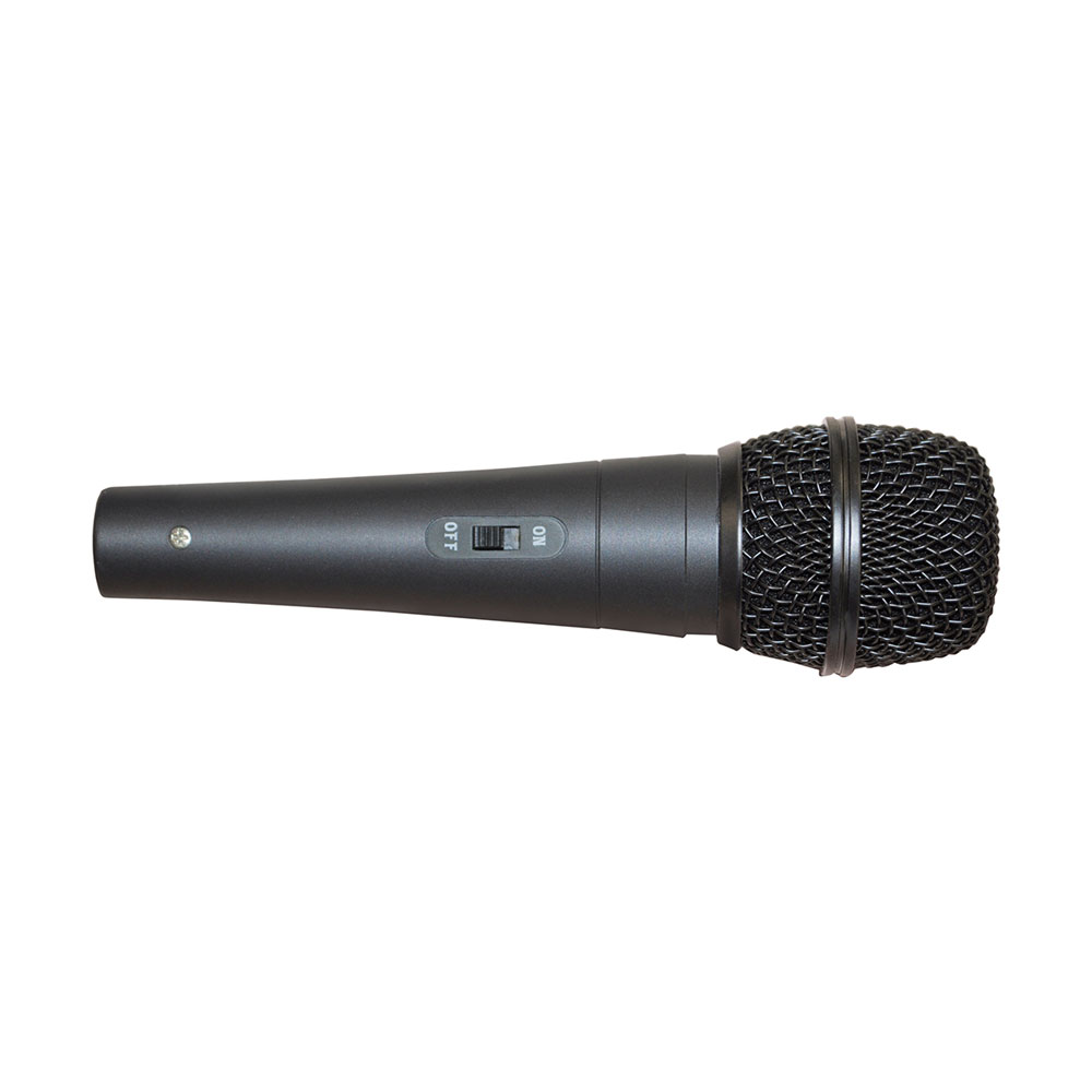 SoundLab's dynamic vocal microphone with a metal chasis, on/off switch and 3 meter long XLR cable.