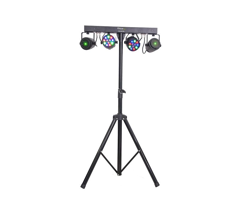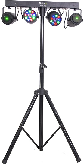 The Ibiza Light DJLIGHT65 is a lighting stand with two RGBW Par Can lighting effects as well as two RG Laser effects.