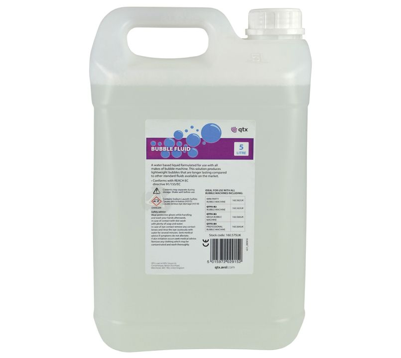 A water based liquid formulated for use with all makes of bubble machine. This solution produces lightweight bubbles that are longer lasting compared to other standard fluids available on the market.