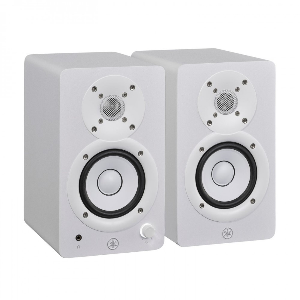 The Yamaha HS3 in white is a compact and lightweight powered studio monitor designed for use in a home studio setup where space may be limited. The speaker units provide fantastic monitoring quality even if the volume is low and meet the needs of a wide range of audio content creation from music production to video editing.