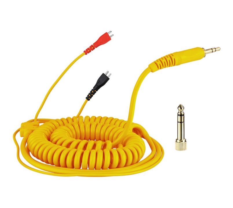 The Zomo DeLuxe Coiled Cable in yellow is 3.5m long and is specially designed for the Sennheiser HD 25 range of headphones. It features a 3.5mm stereo jack plug, including a 6.3mm adapter and gold-plated connections. The cross-section of the spiral cable is thicker than standard cables, which brings technical and optical advantages.